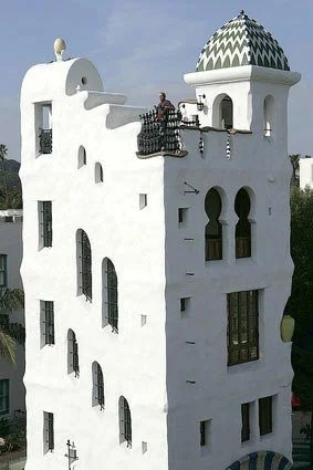 El Andaluz looks more like a Barcelona building designed by Antoni Gaudí than it does a California condo complex. Its bold forms, vibrant colors, and curves galore look similar to Gaudí's Casa Batallo and set the building apart from its tidy Americana neighbors.