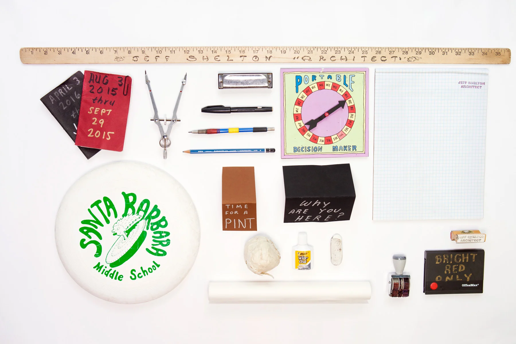 Architect Jeff Shelton has spent his career re-contextualizing the streets of Santa Barbara, California. Whether for residences, businesses, or — soon — public infrastructure, amidst the endless white “Spanish-style” buildings that define the city, Shelton’s whimsical reimagining of familiar plaster forms stand out. Squiggly purple metalwork, psychedelic patterns, irregular voids, curiously slumpy volumes, and unconventional glasswork create structures that, while remaining distinctively Santa Barbara, are also unquestioningly his own. In fact, each element is of Shelton’s own design, from the furniture to the lighting to the textiles and tiles, all realized with the help of skilled craftspeople and collaborators who help him complete his aesthetic universe. We recently caught up with Shelton from his studio, where he was surrounded by colored hand drawings.